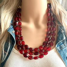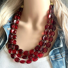 I love this collision of maroon colors dancing on 3 strands! This is made of all acrylic beads.