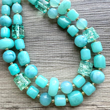 Dress up any outfit - great for a night out or with a white tee! 16 Inch Necklace with a 4 inch silver extender chain and silver lobster clasp. Gorgeous blue acrylic faceted beads have a sparkle and shine that catches in the light!