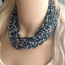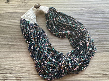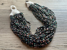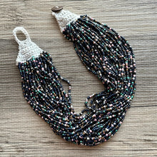 Make a statement! Gorgeous array of different colored seed beads, all hanging together and crocheted together with a button closure.