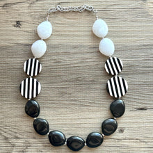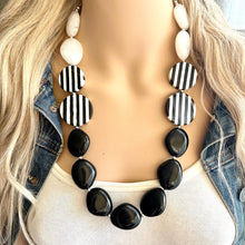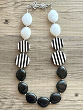21 Inch Necklace with a 4 inch silver extender chain and silver lobster clasp. These beads are so unique - they are black and white in resin so no 2 are exactly alike ๐