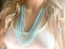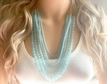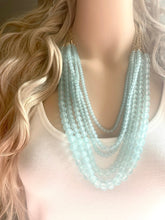 A note about the COLOR: When I ordered these beads, the color was labeled as “arctic blue”. After I made the necklace, I noticed the 6 strands together almost matched my mint green bracelet I was wearing. They seem to take on a little of the color they are near, but are somewhere between a light blue and a mint green 😍