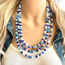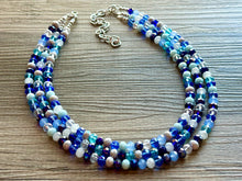 A great statement piece! 3 layers of blue and silver glass beads collide in our signature confetti style.