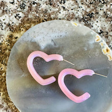 Blush pink Creamy Rainbow Geometric Open Heart Hoop earrings set, pastel jewelry, acrylic hoops bridesmaid statement resin Valentine fall