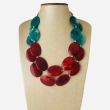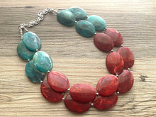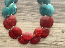 Christmas Chunky Statement Necklace, Big beaded jewelry, multi strand Statement Necklace, chunky Christmas gift jewelry earrings red green