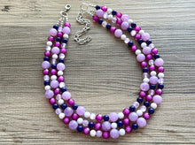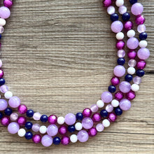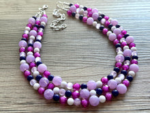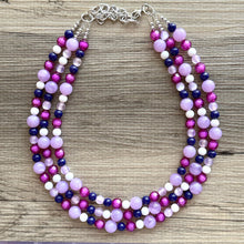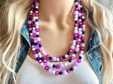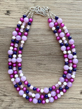 A great statement piece! Three layers of bright purple, transparent crystal beads that are multi-faceted so they catch the light beautifully.