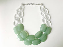 Clear & Mojito Green Statement Necklace, big Beaded Chunky Jewelry, Double Strand wedding everyday dress, green necklace, mint green jewelry