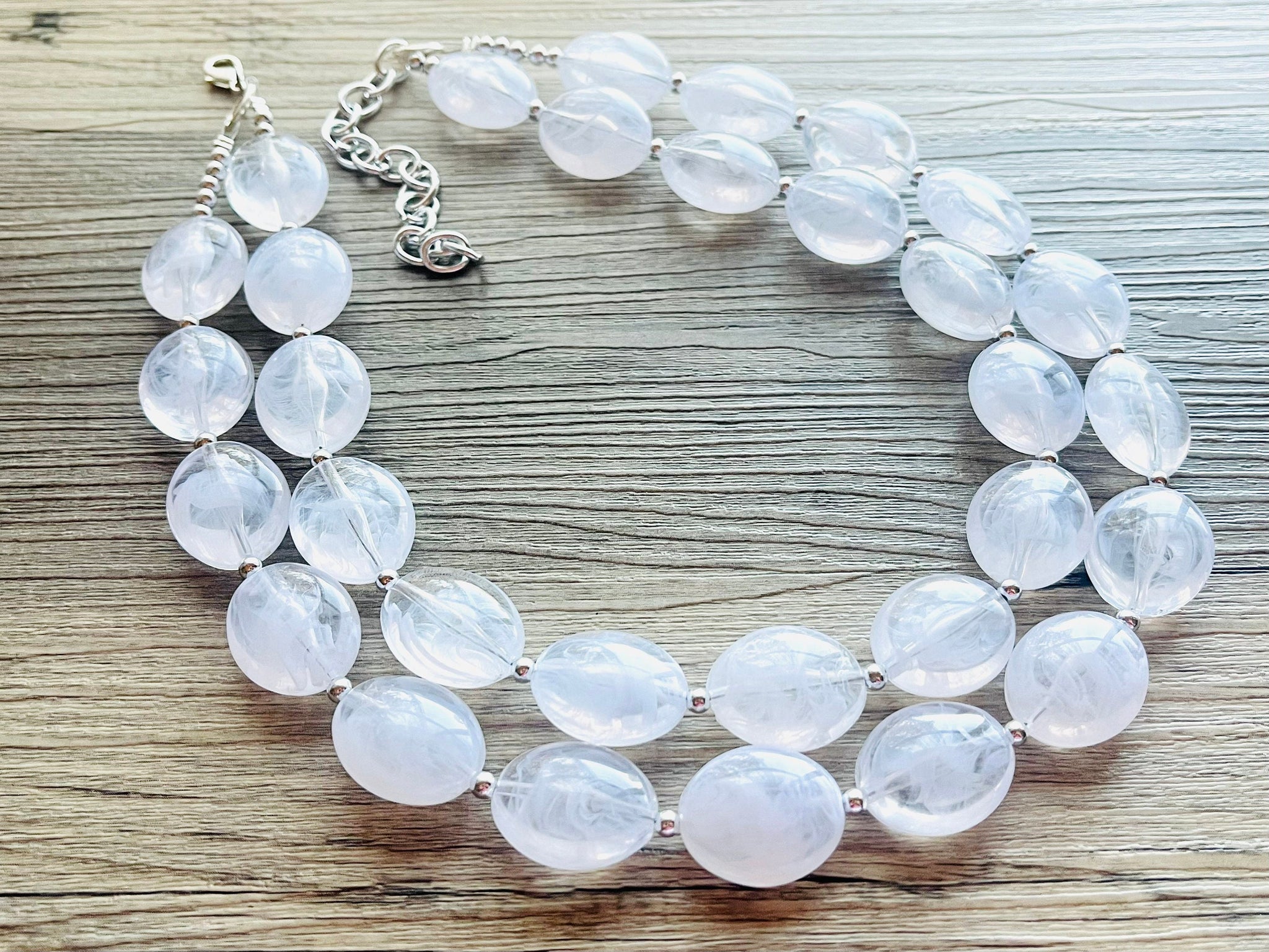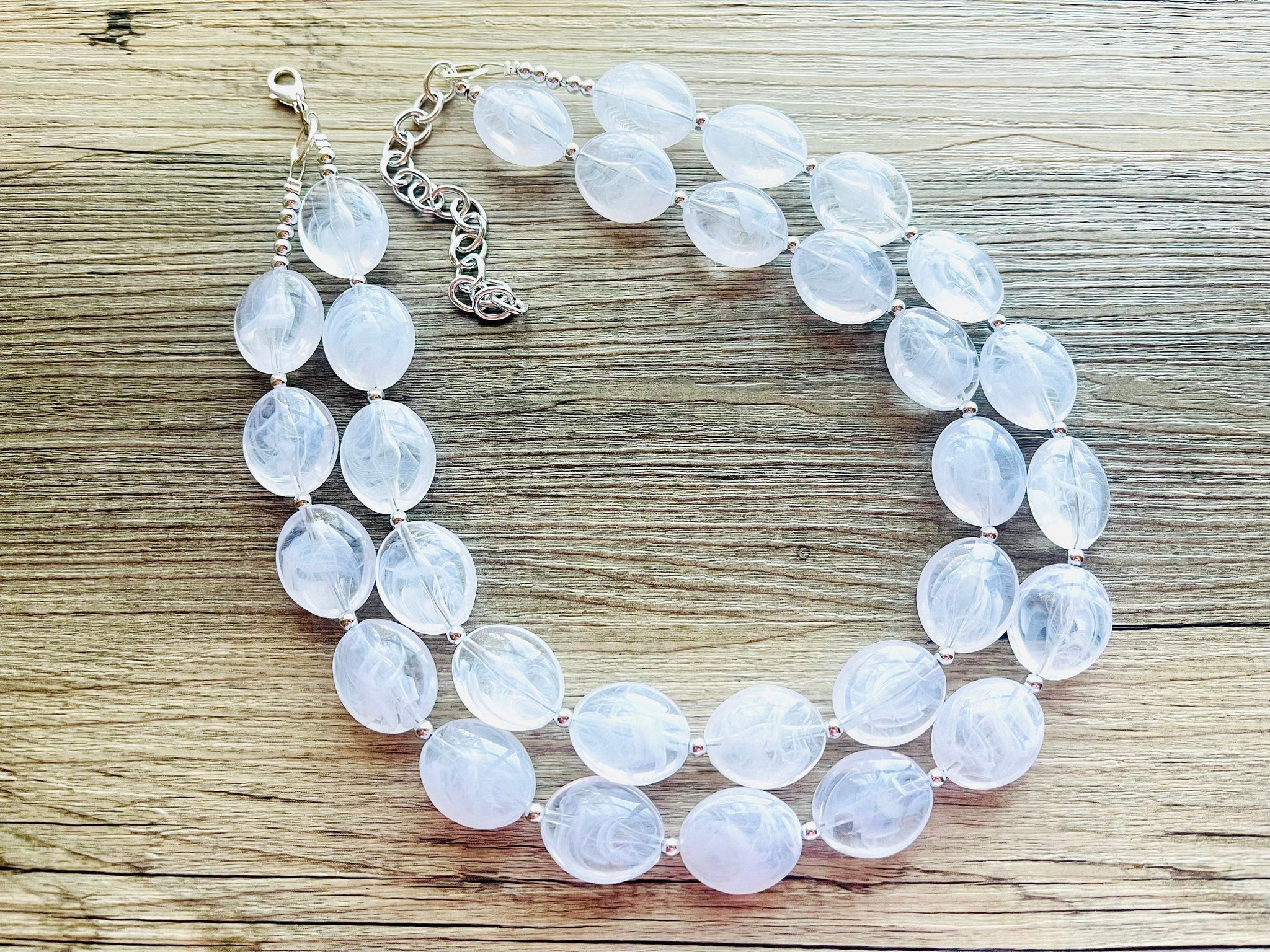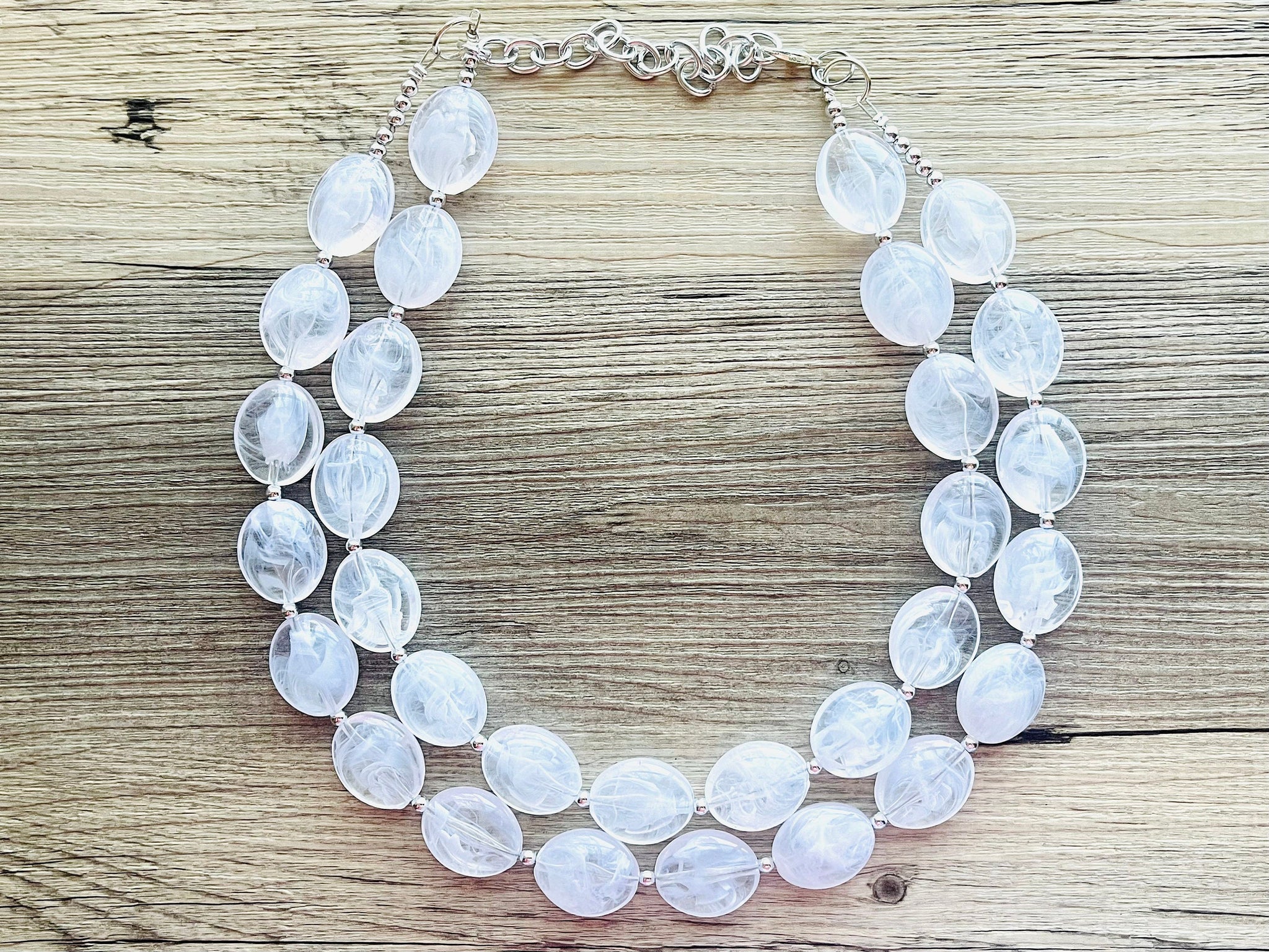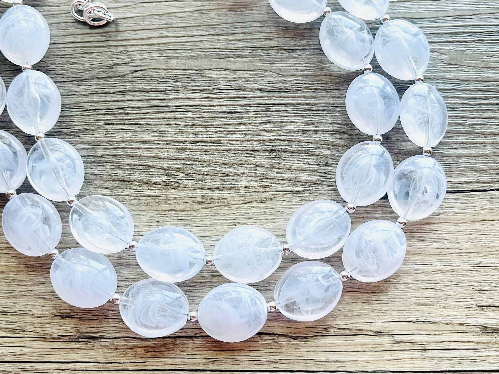 Bright & fun White statement necklace! Smooth, white oval cut acrylic beads.