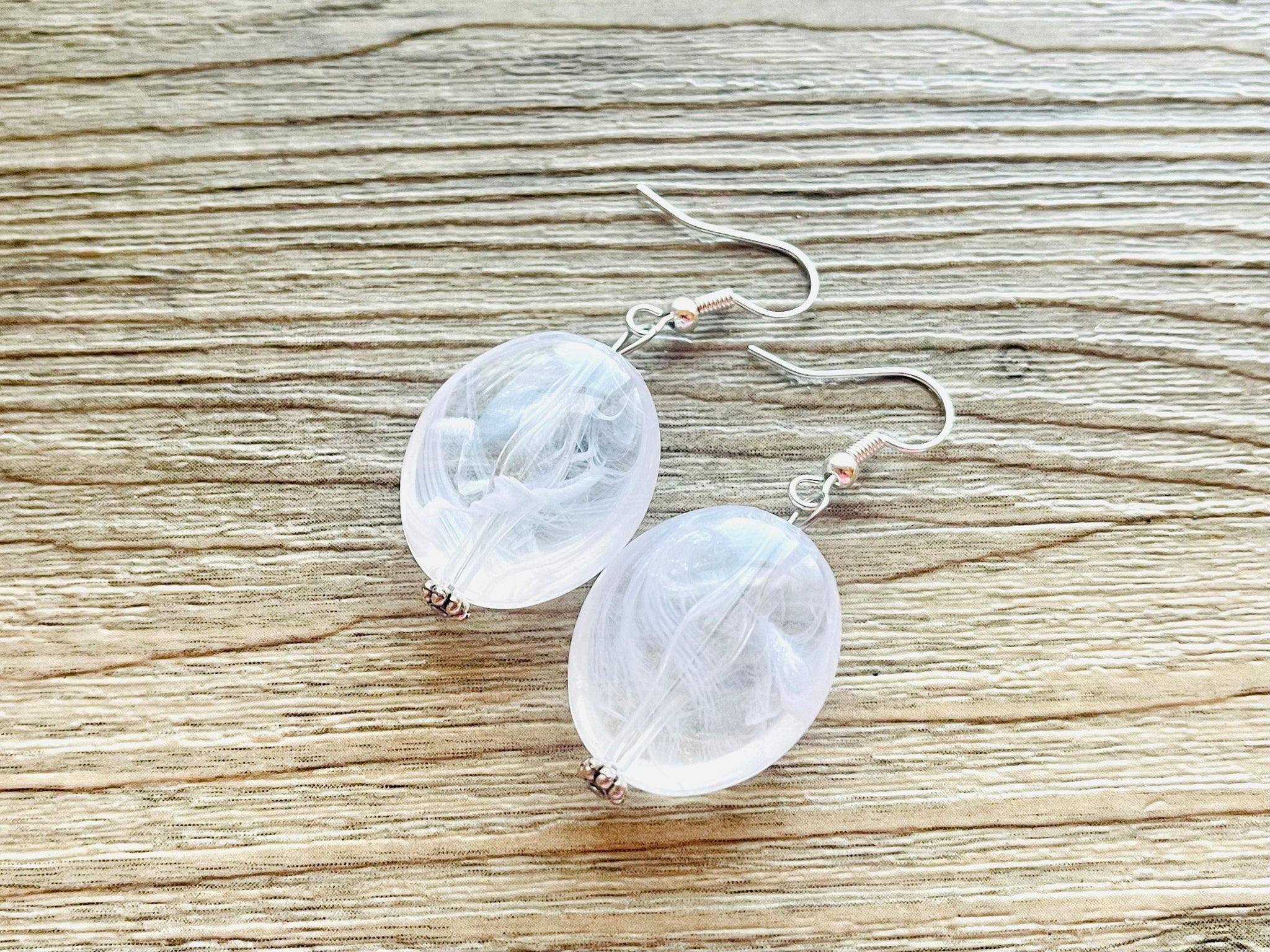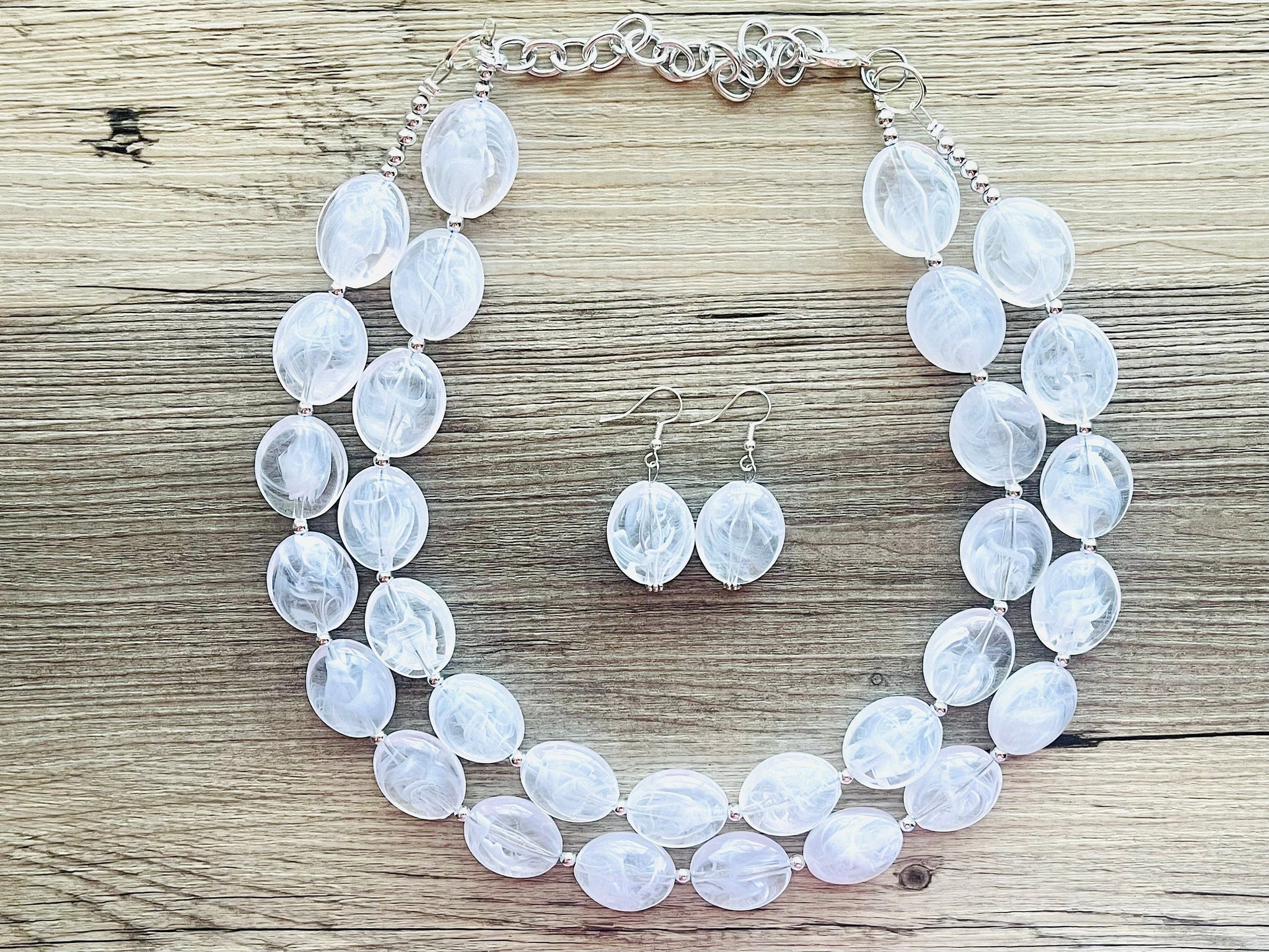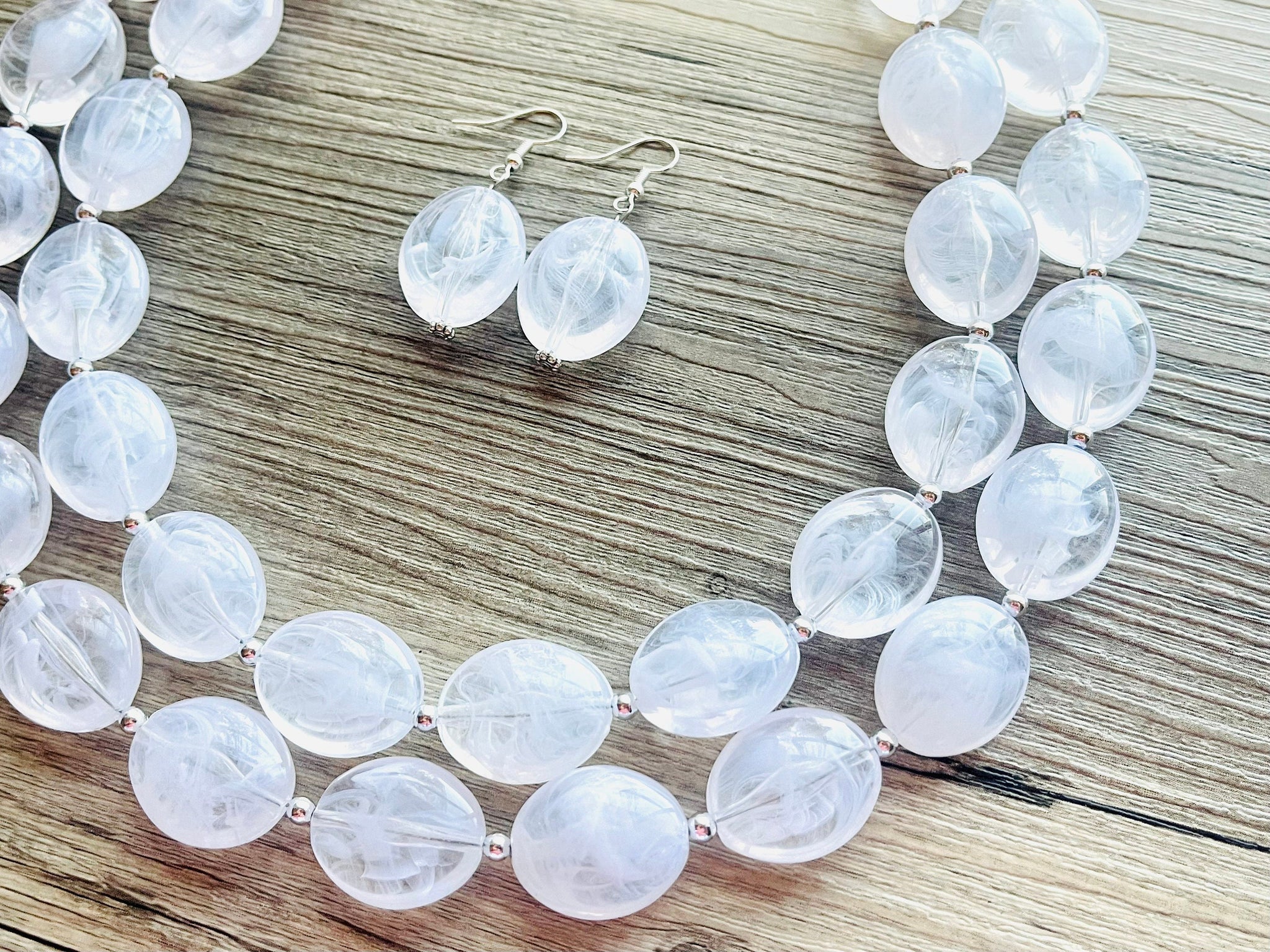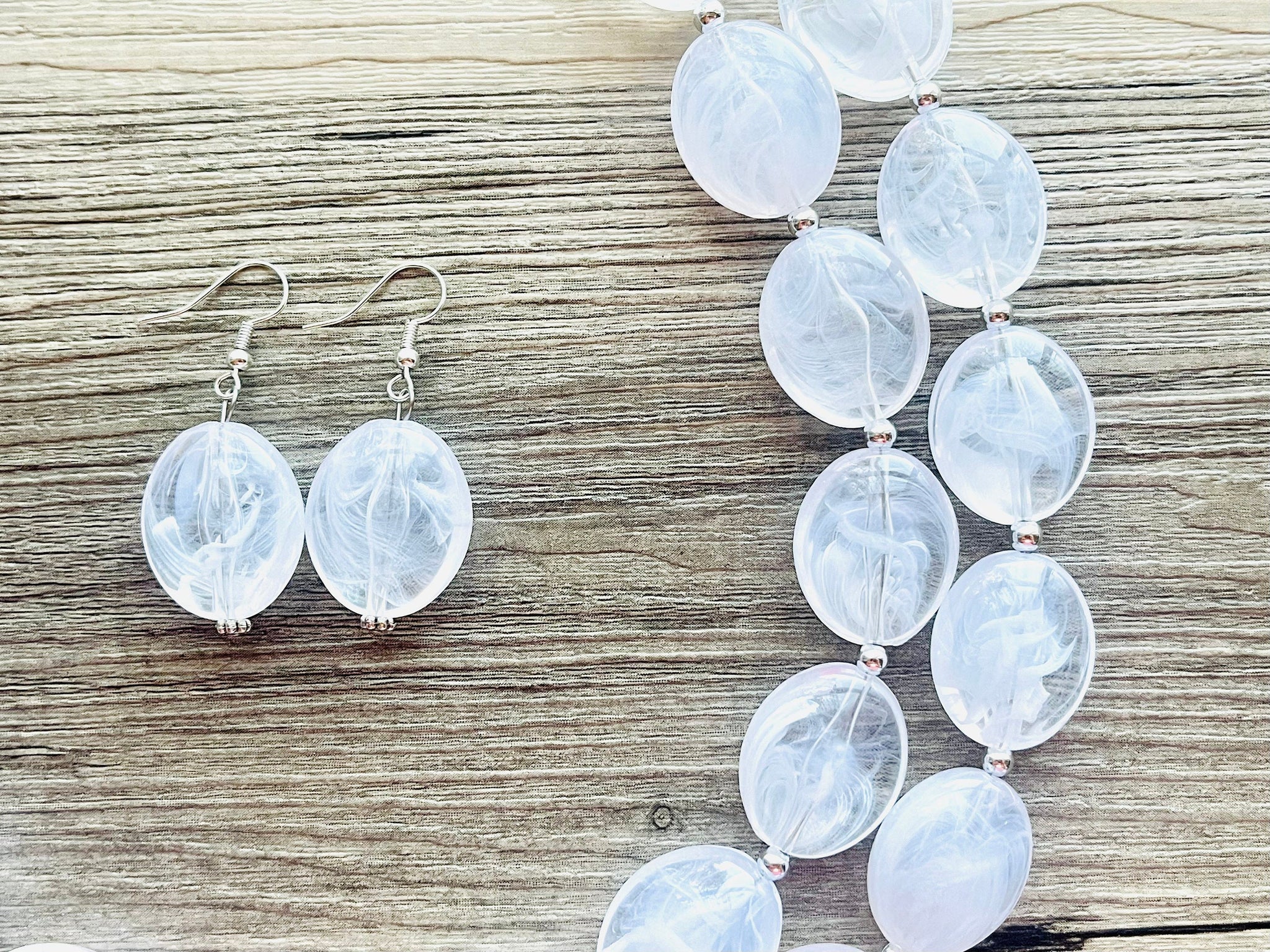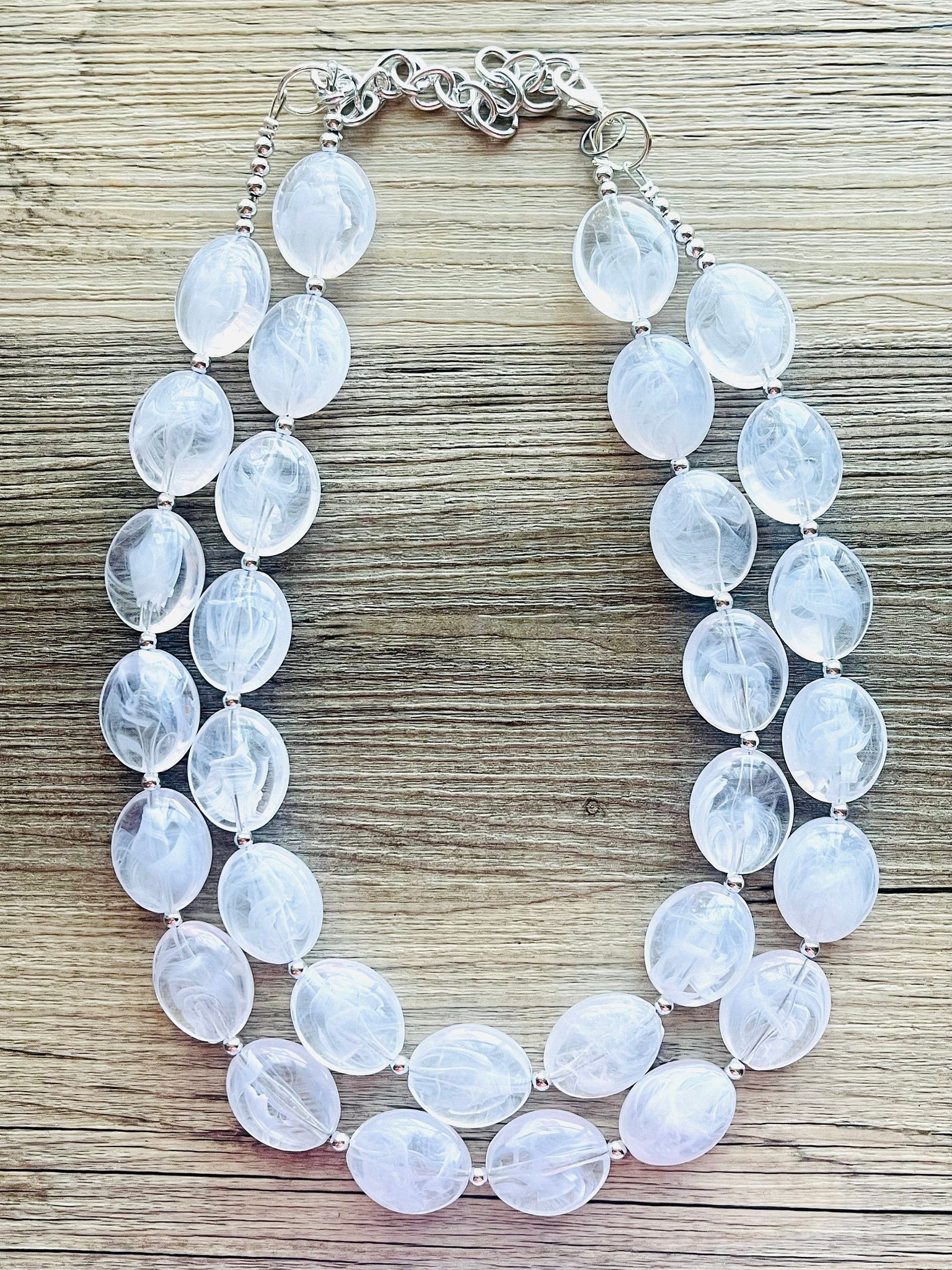 Bright & fun White statement necklace! Smooth, white oval cut acrylic beads.