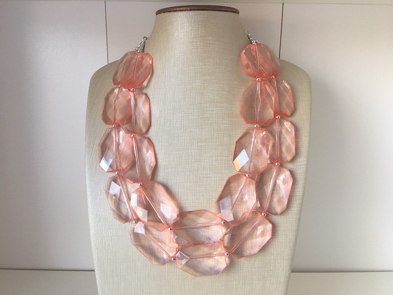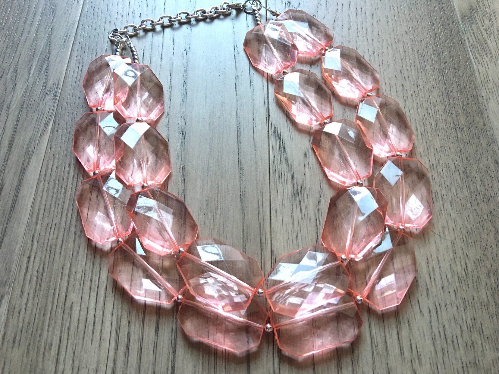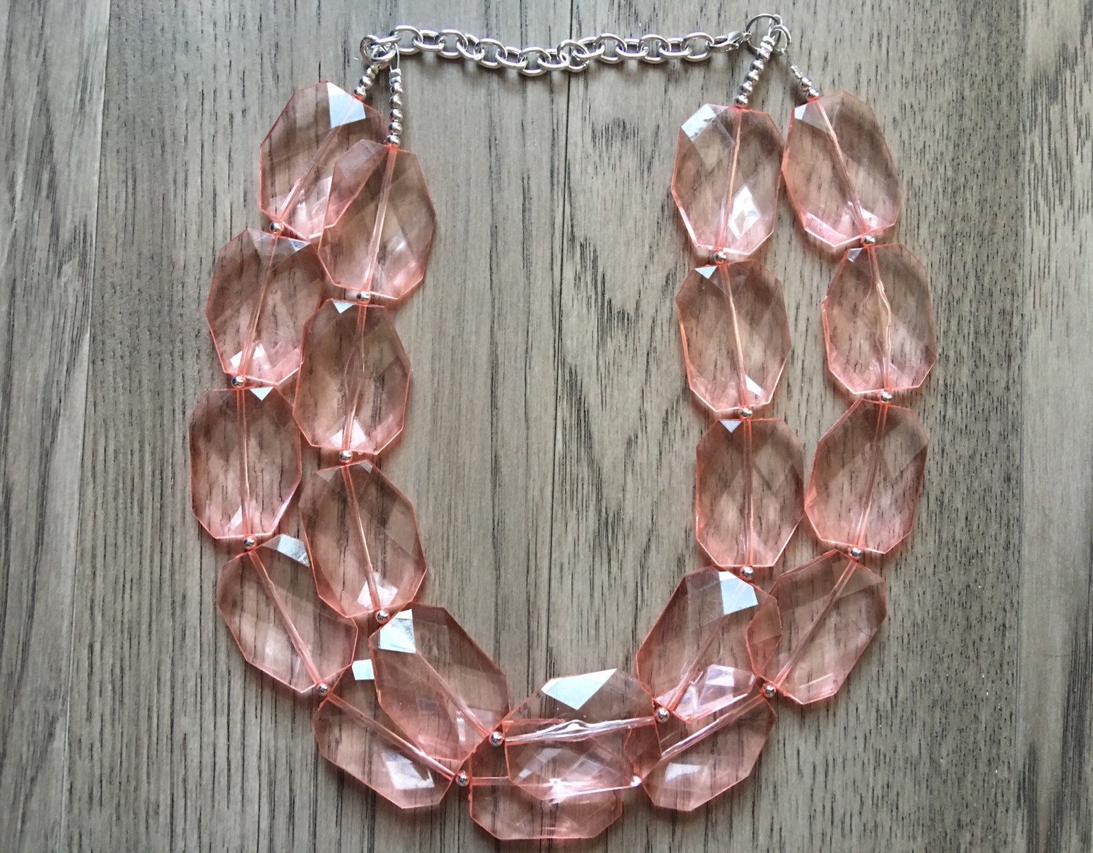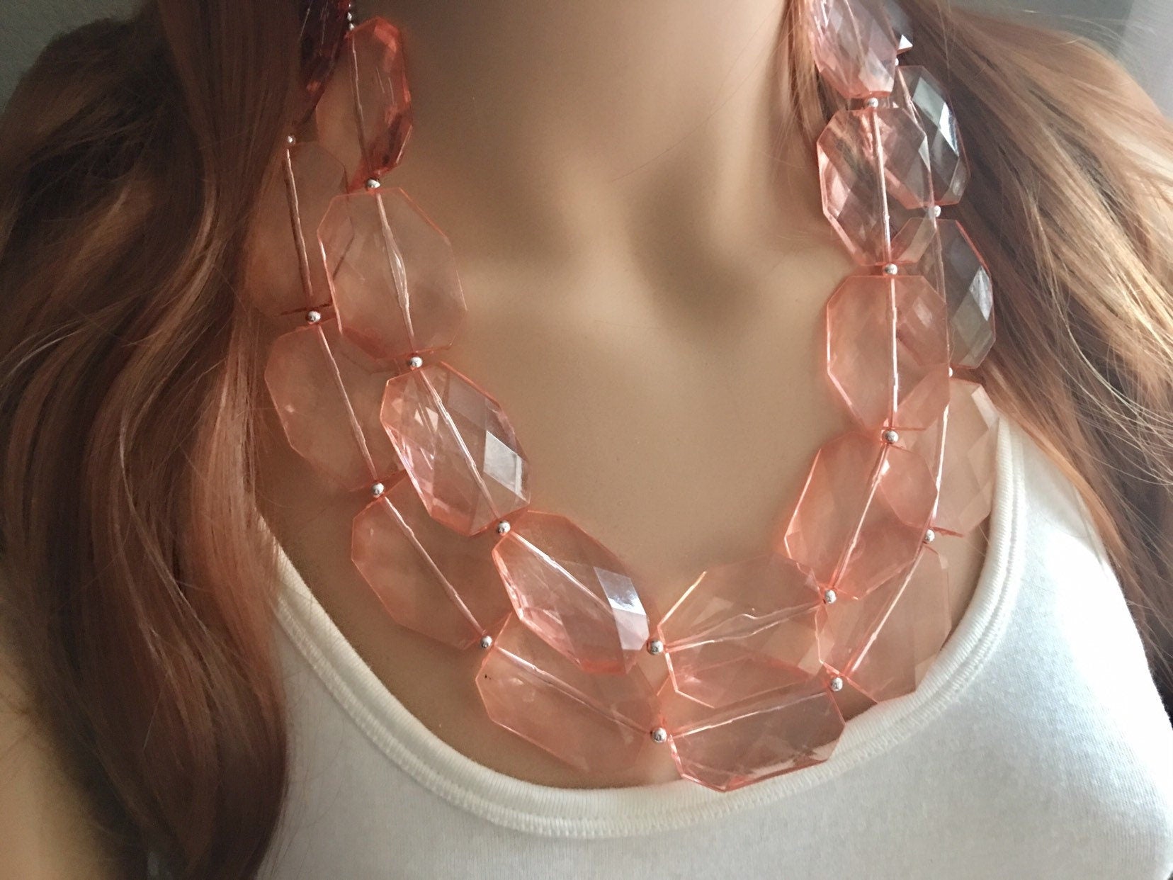 Coral Chunky Statement Necklace, double strand necklace, blush necklace, light pink necklace, coral wedding, bridesmaid necklace