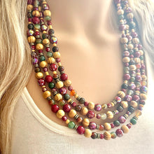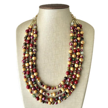 I love this collision of fall colors set on 4 strands! It is made from resin, acrylic, wood beads - plus genuine agate beads in fall colors ๐