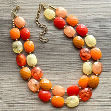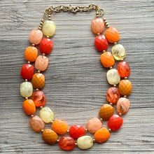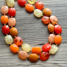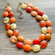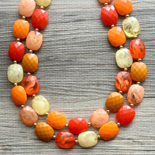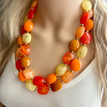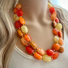 Shades of Fall! A mix of shades of vintage gold, rich red, seasonal orange, and mustard yellow create a chunky statement look for your favorite season.