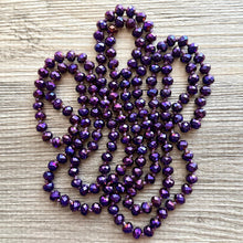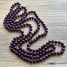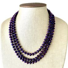 This necklace is very long, it is 59โ end to end with no clasp or toggle. Handmade knots between each bead.