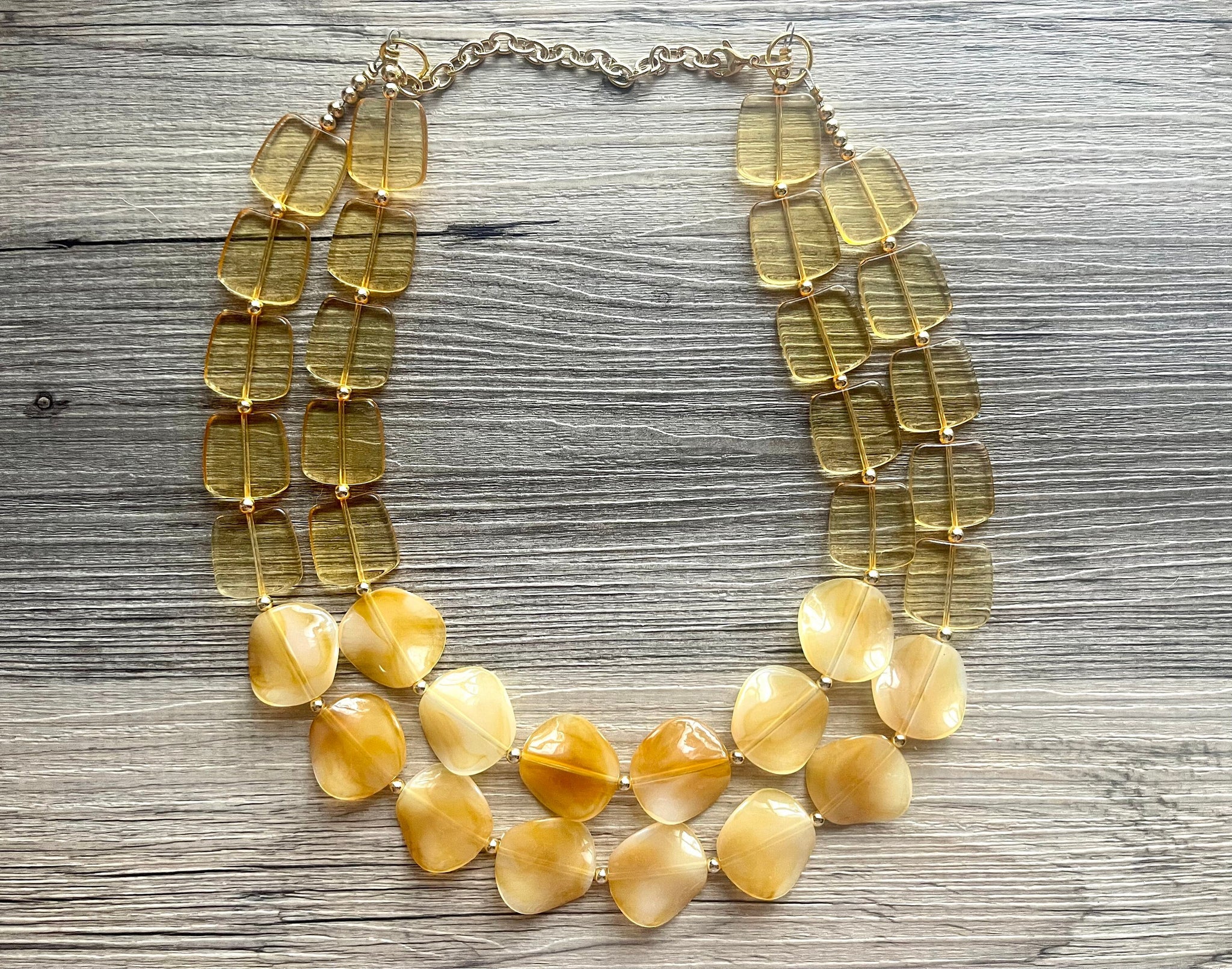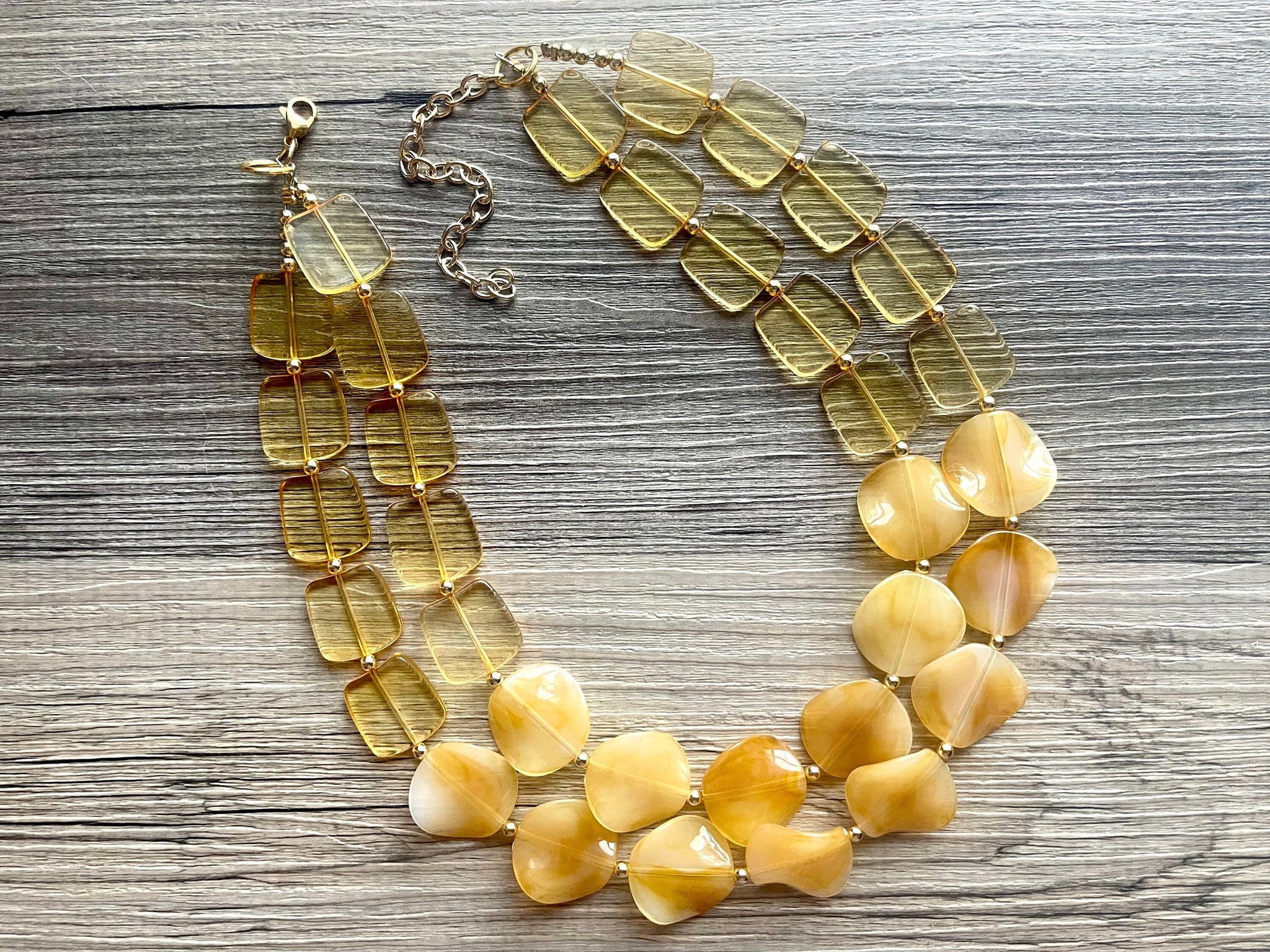 A great statement piece! A collar of yellow statement beads in a 2 strand unique piece of art.