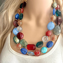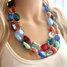 A great statement piece! Two layers of complimentary beads collide in our signature confetti style. This is a mix of acrylic beads and gold accents.