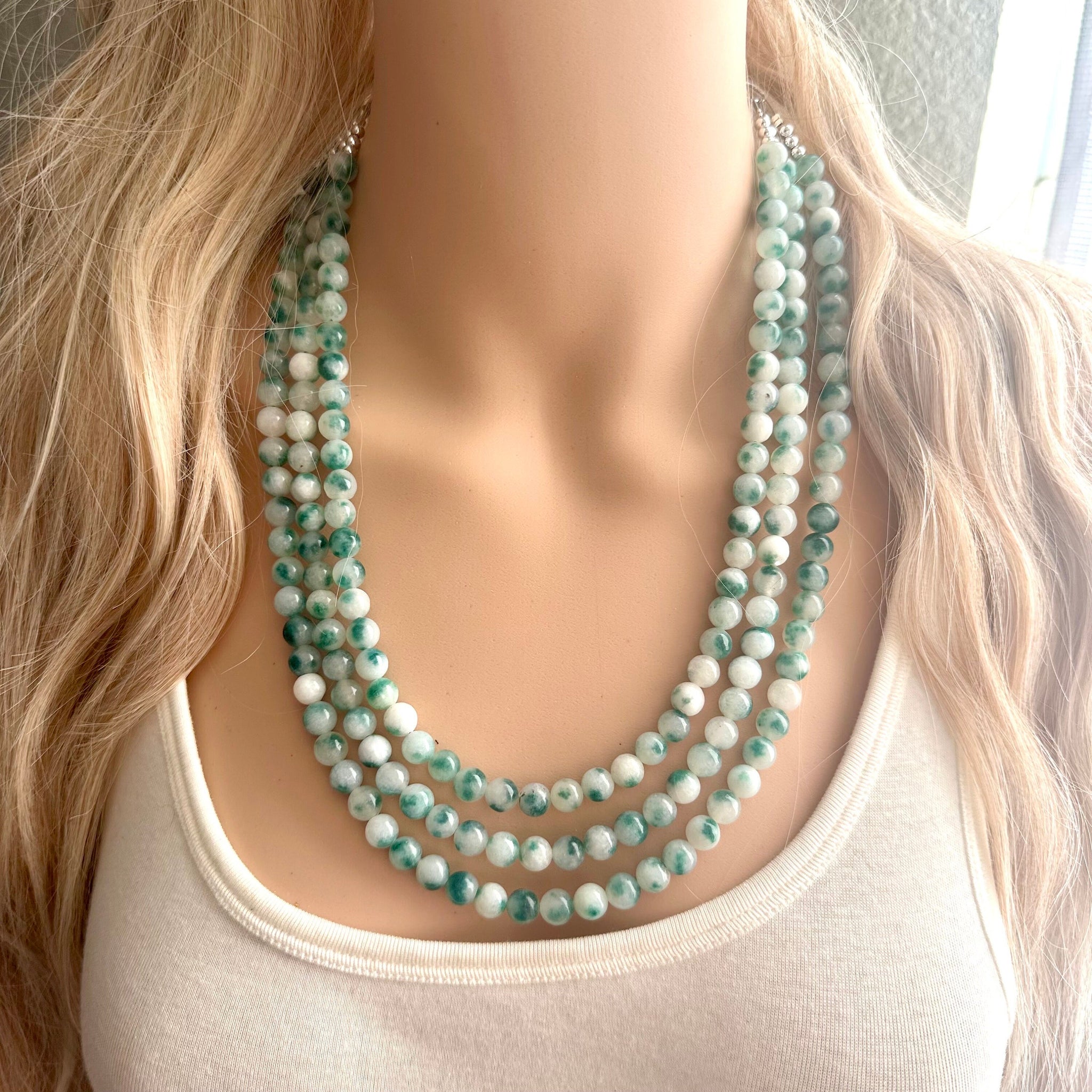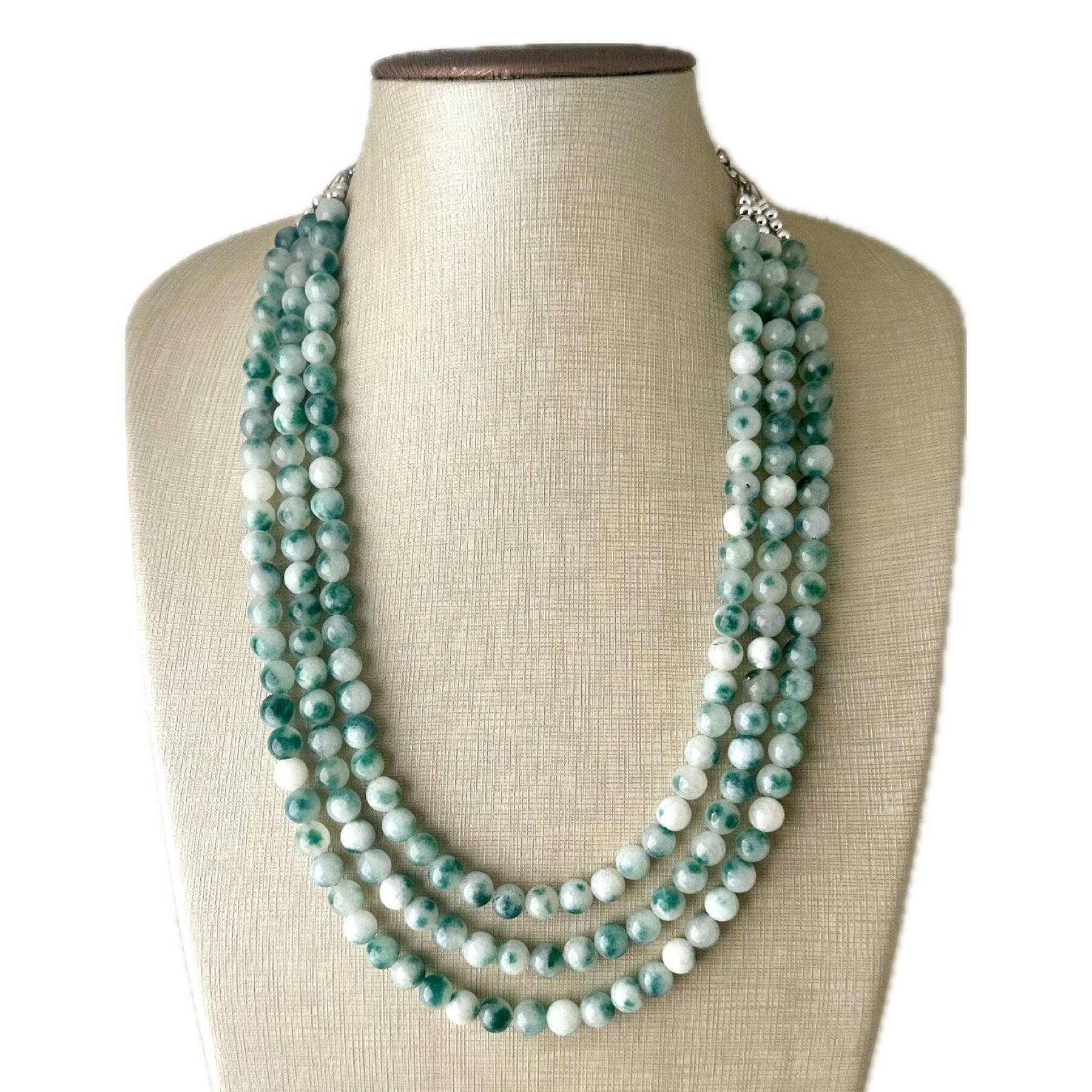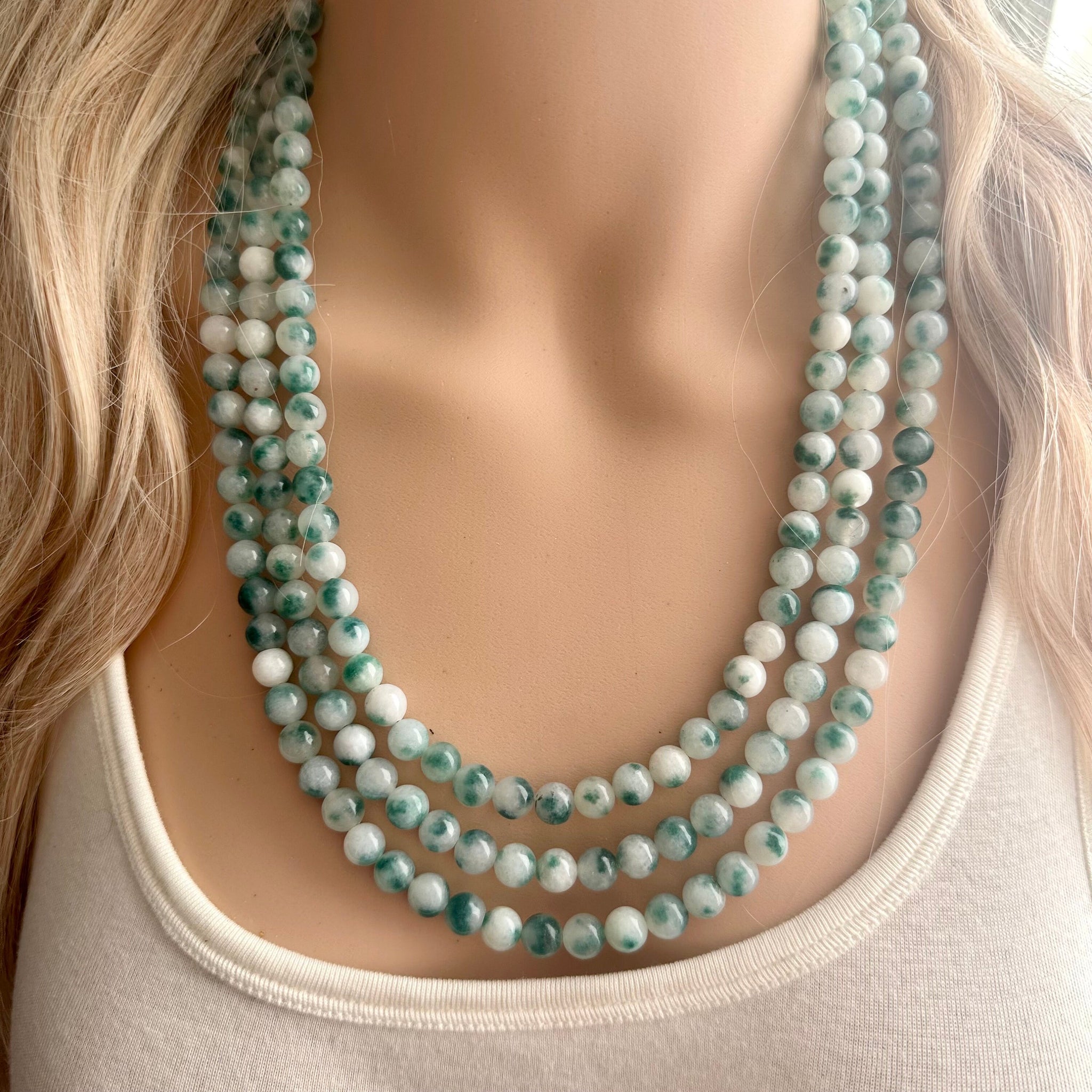 We love this freckled necklace, made with glass dyed beads. It is 16” plus a 4” extender chain.