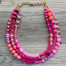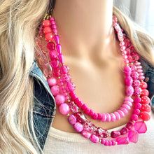 Girls Weekend Necklace, Beaded 3 Layer Necklace, bead statement necklace, blush hot pink beaded bib chunky heart magenta Valentine