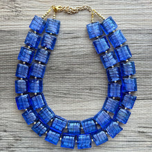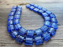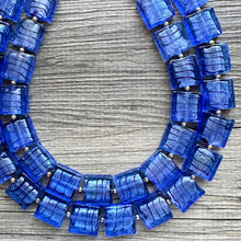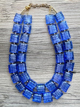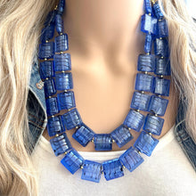 Earrings are a matching, single blue bead, 2" drop fish hook style pierced earring. Can be worn to match the necklace or on their own!