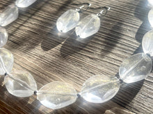 A great statement piece or set! Faceted resin beads, filled with bubbles and glitter with silver findings.