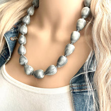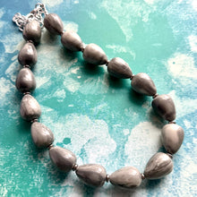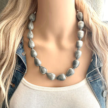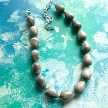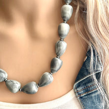 16 Inch Necklace with a 4 inch silver extender chain and silver lobster clasp. These beads are so unique - they are gray swirl painted so no 2 are exactly alike ๐