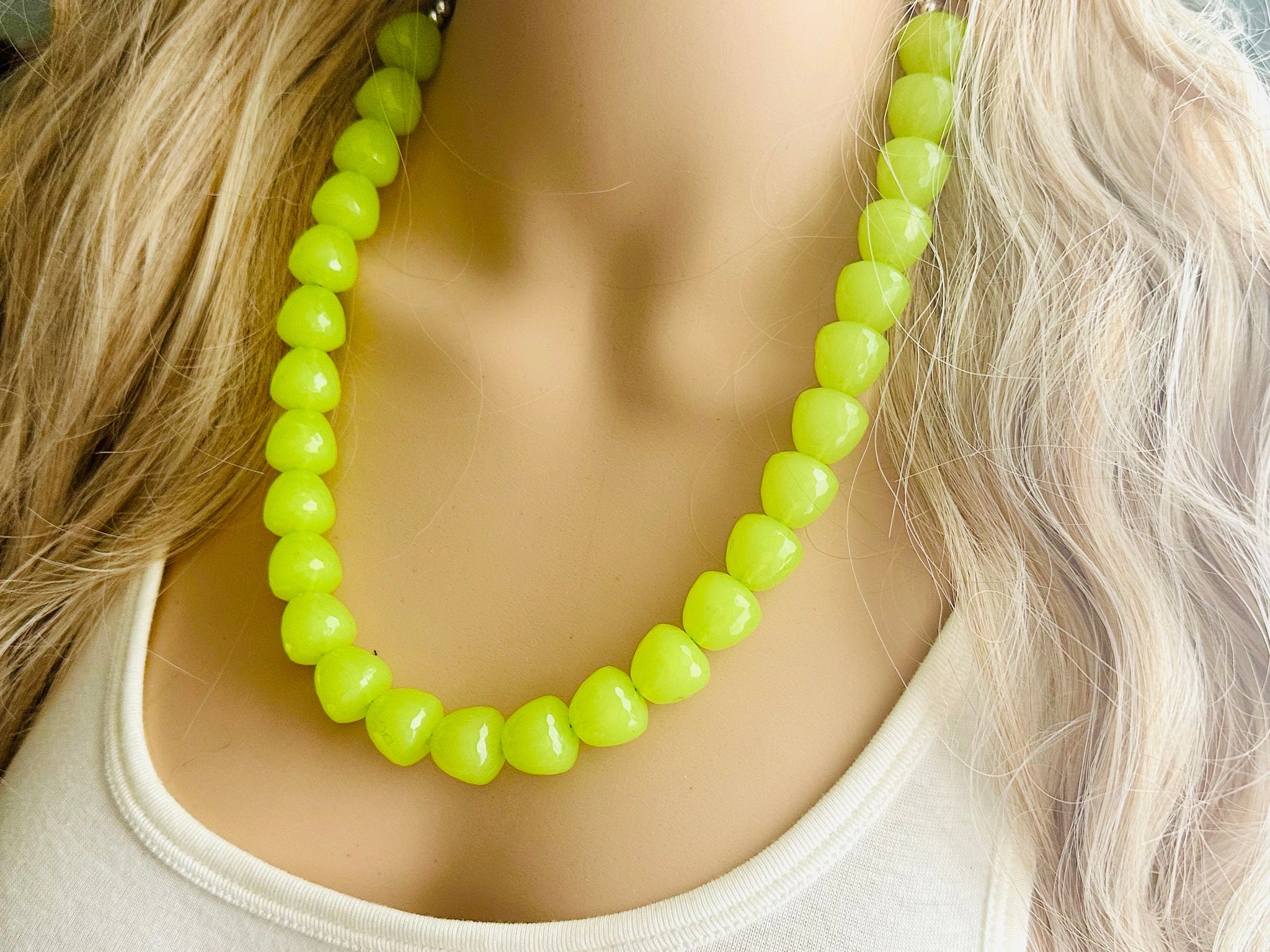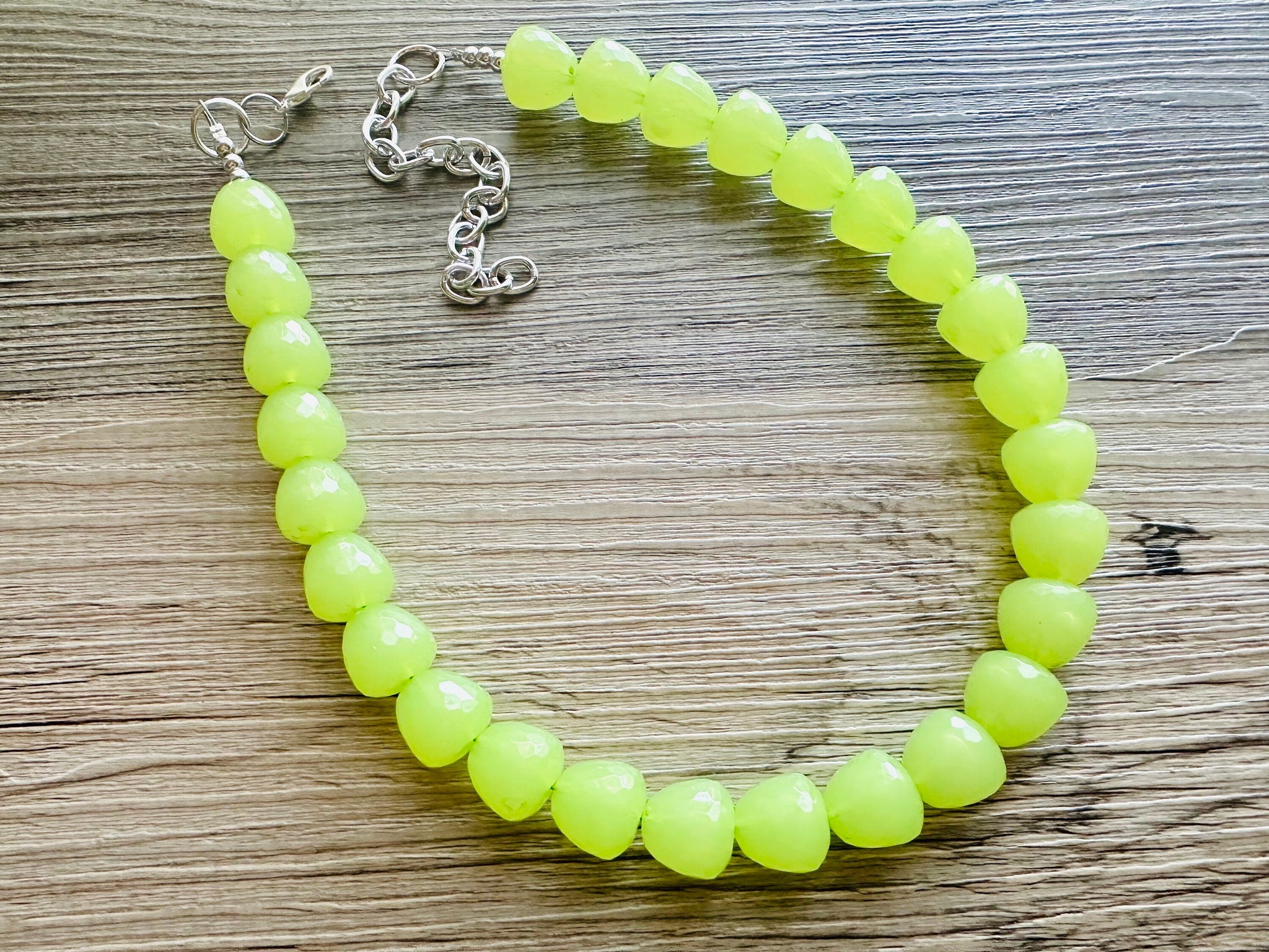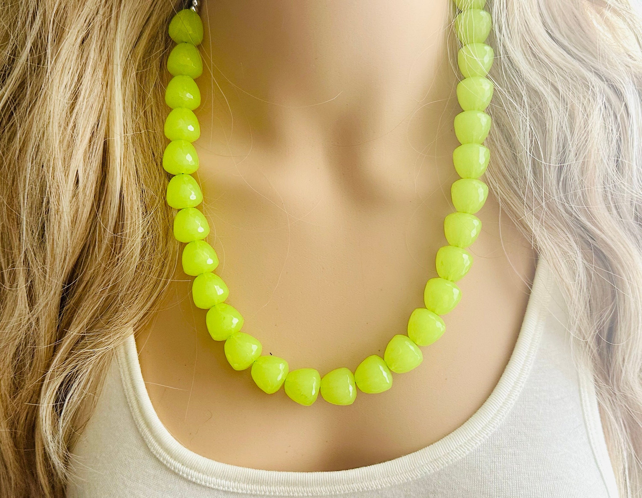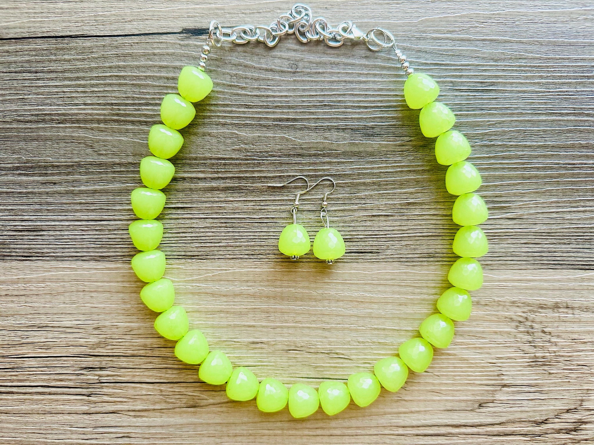 Gumdrop Bead Apple Green Necklace, Single Strand Statement Jewelry, light green Chunky bib bridesmaid everyday bubble jewelry earrings