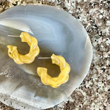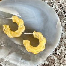 Honey Butter Statement Drops, resin Rainbow Geometric Drop Hoop earrings set, pastel jewelry, twisted acrylic hoops bridesmaid yellow