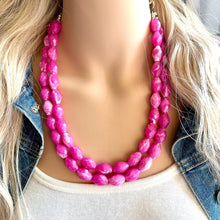 Bright & fun Pink statement necklace! Faceted, pink acrylic beads.