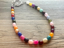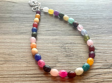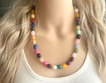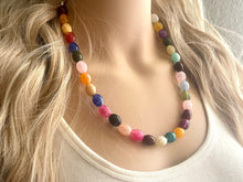 A gorgeous confetti style necklace with creamy oval beads in all the best colors. Silver finishing.