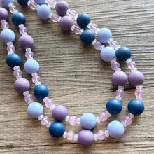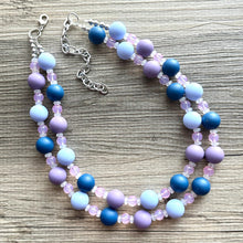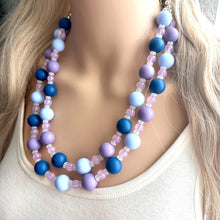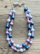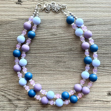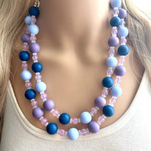 A fun, cluster style necklace in shades of blue and creamy jewel tones!