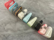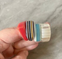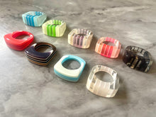 Laser Acrylic Cut Rainbow Stack Rings, chunky retro rings, thick rings, 70s 80s inspired vintage style stacked rings, red statement blue