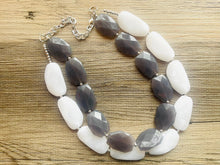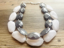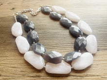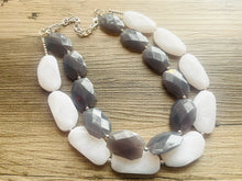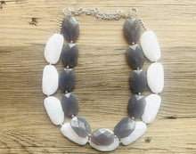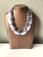 Layered white & gray Necklace, multi strand jewelry, big beaded chunky statement necklace, bridesmaid necklace, bib necklace, gray