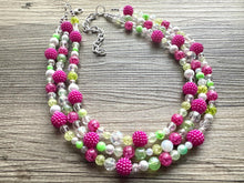 Acrylic beaded necklace made with richly colored beads that have a high end look but durability of acrylic.