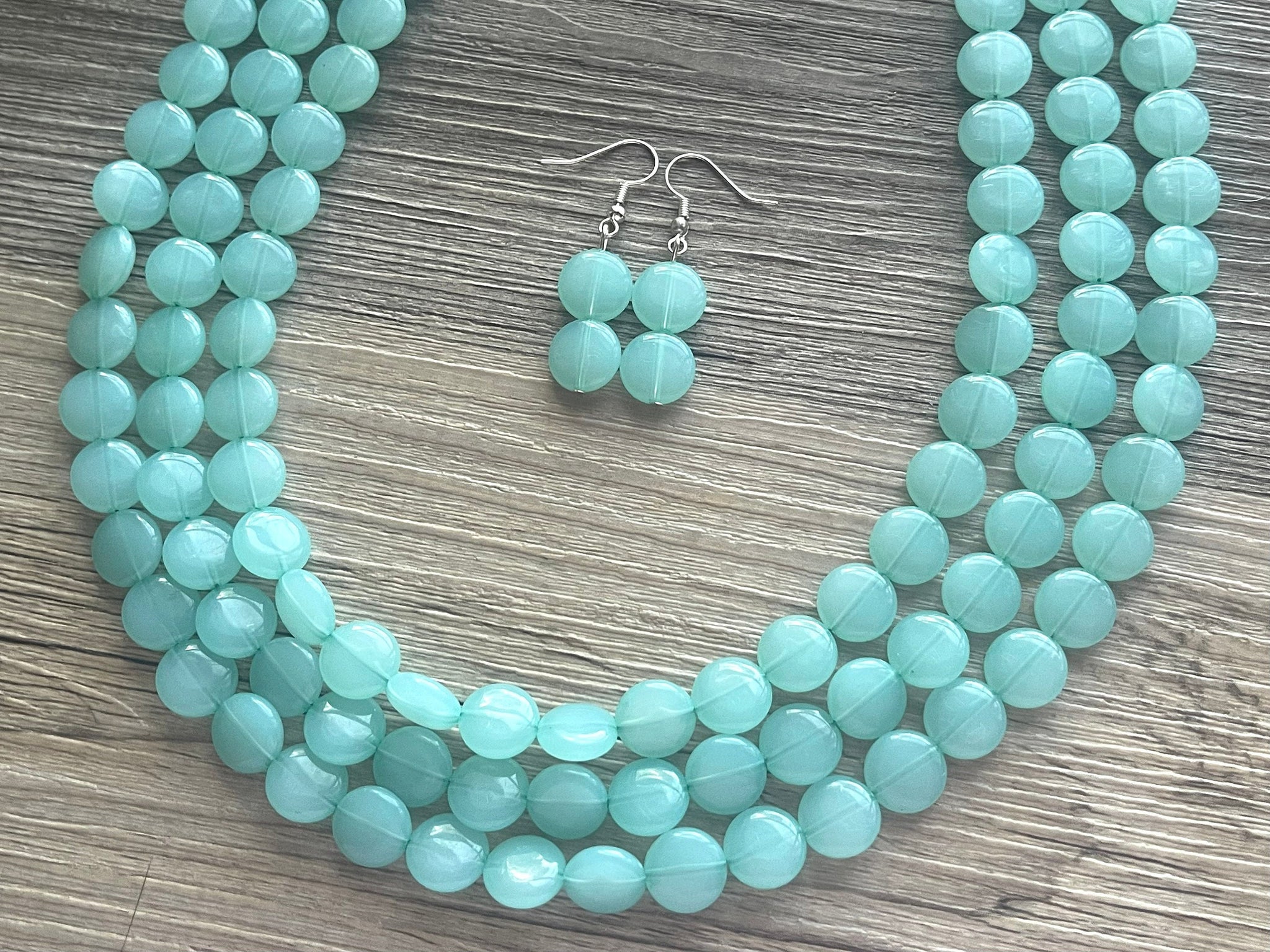 Earrings are a matching double bead with a silver fish hook style closure.