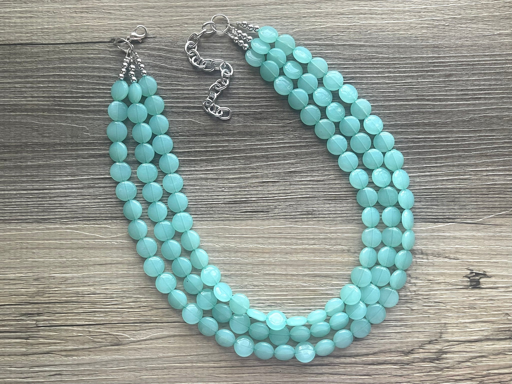 Dress up any outfit - great for a night out or with a white tee! 16 Inch Necklace with a 4 inch silver extender chain and silver lobster clasp. This is an eclectic bunch of acrylic beads in a “lentil” style. A total conversion starter!
