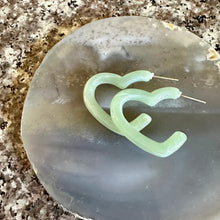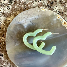 Mint Green Creamy Rainbow Geometric Open Heart Hoop earrings set, pastel jewelry, acrylic hoops bridesmaid statement resin Valentine fall