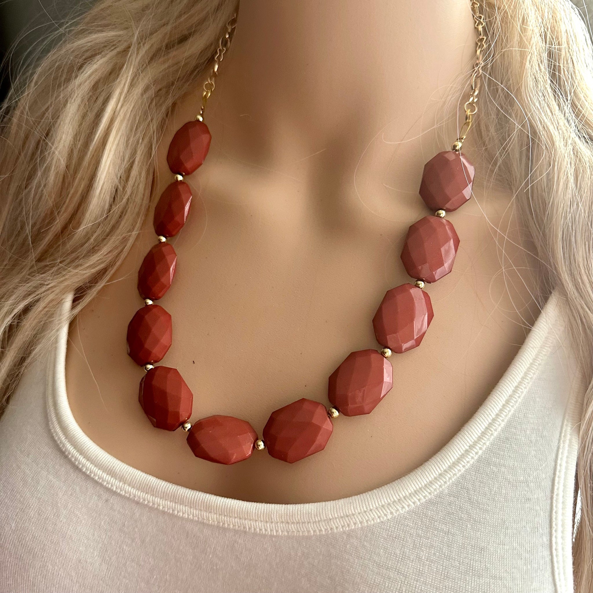 Classy and fabulous! A gorgeous mocha acrylic and gold chain work perfect with almost any color top - I personally love pink, white, or light blue!