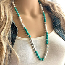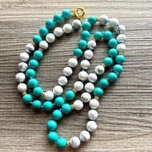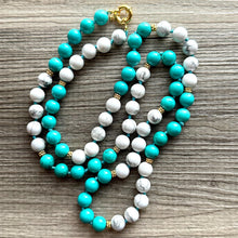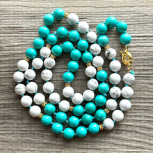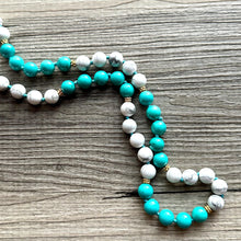 We love this blue necklace, made with Natural gemstone Beads. It is 28” plus a lobster clasp closure.