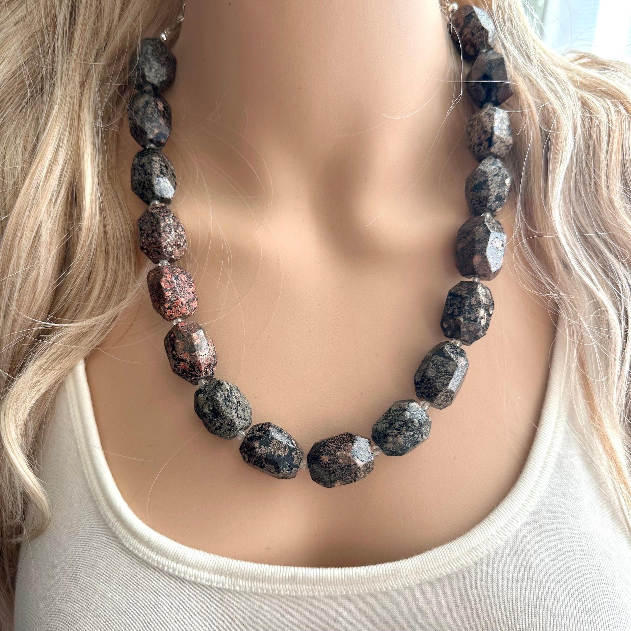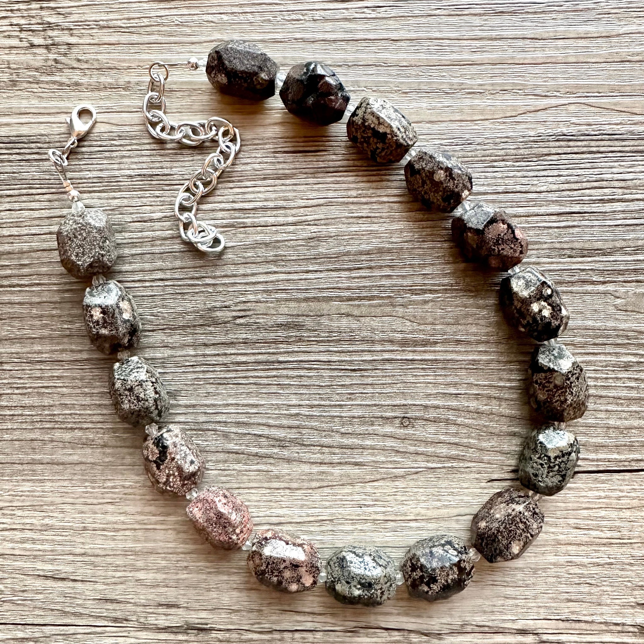Natural Opal Beaded necklace, 1 strand Statement Necklace, Chunky Bib Single Jewelry stone jewelry, gemstone layering black stone bead