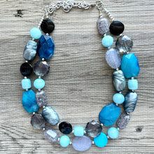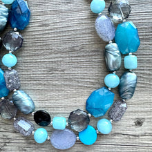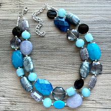 Gray, silver, and blue double strand necklace. This is BEGGING for a simple white Tee and a red lip! ππ