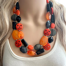 Orange & Black Spooky Halloween Necklace, Double strand orange jewelry, jack O Lantern pumpkin chunky big bead statement necklace
