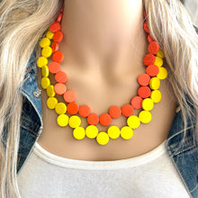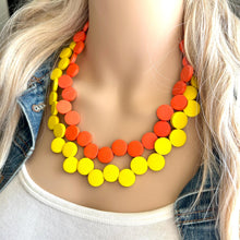 Orange & Yellow Painted Wood Chunky Statement Necklace, Big beaded jewelry, double Strand Statement Necklace, Bib bridesmaid wedding