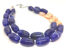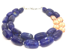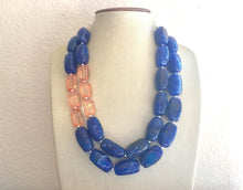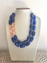One of a kind and ready to ship! This is a thick and chunky navy blue and peach beaded statement that is sure to be a conversation starter - everyone will ask you where you got this fabulous and unique piece!