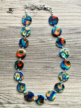16 Inch Necklace with a 4 inch silver extender chain and silver lobster clasp. Round shell beads adorn this chunky single strand necklace.
