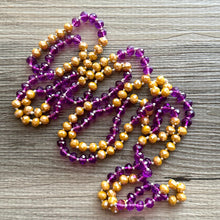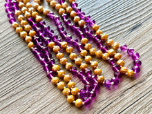 Peanut Butter & Jelly Glass Bead Chunky Statement Necklace, long glass jewelry beaded necklace, layering necklace purple tan brown long