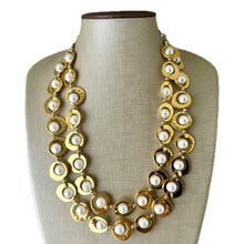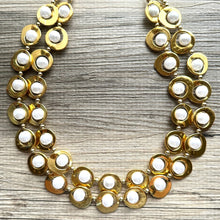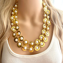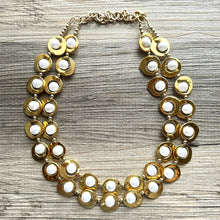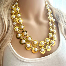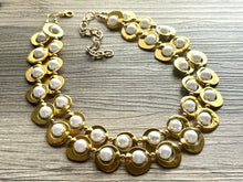 Pearl & Gold Chunky Statement Necklace, 2 Strand Beaded Jewelry golden jewelry, bridesmaid wedding bib rose gold white pearl double shiny