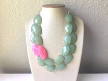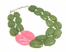 I found 2 gorgeous, cotton candy pink beads and knew immediately I wanted to pair them with rich green beads for a preppy, fun statement necklace.