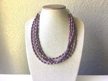 This gorgeous tiny Beaded necklace is such an interesting piece! Pretty purple beads have a galaxy type effect. 5 strands for added drama!