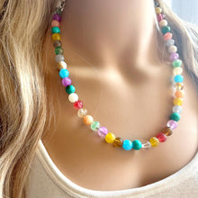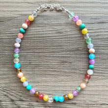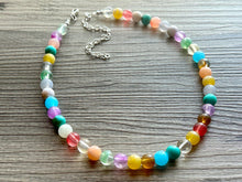 This is a personal favorite! A fun blend of rich and vibrant colored creamy acrylic beads. 16" long with a 4" extender chain.