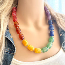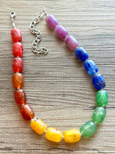 Fun and Flirty! 16 Inch Necklace with a 4 inch silver extender chain and silver lobster clasp. A variety of acrylic beads. They look like gemstones but are much lighter weight!