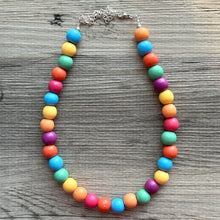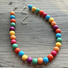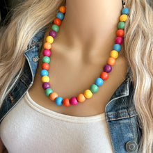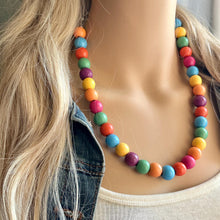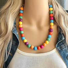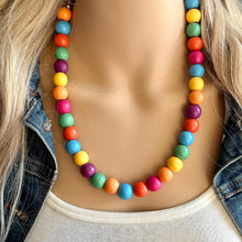 Such a fun piece! Add a burst of color to your ensemble. 16” (shortest strand) plus a 4” extender chain. All wood painted beads.
