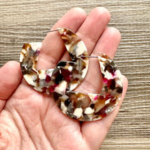 About 2” across, drop earrings. Silver hardware. Laser cut from colorful acrylic sheets. You will LOVE these!